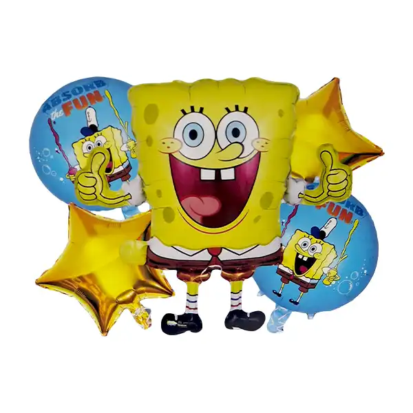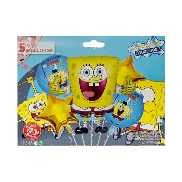 بادکنک 5 تکه باب اسفنجی از دو عدد بادکنک گرد باب اسفنجی 18 اینچ ، یک عدد بادکنک فویلی باب اسفنجی 69 در 60 سانتی متر، و دو عدد بادکنک ستاره ای طلایی 18 اینچ تشکیل شده است.