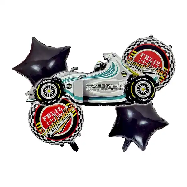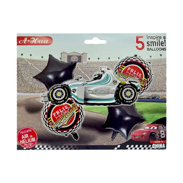 ست بادکنک ماشین مسابقه ای 5 تکه انتخابی جذاب برای دکوراسیون جشن تولد کودکان است. طراحی این مجموعه با رنگهای پرانرژی و طرح ماشینهای مسابقه، فضایی پرهیجان و شاد ایجاد میکند.