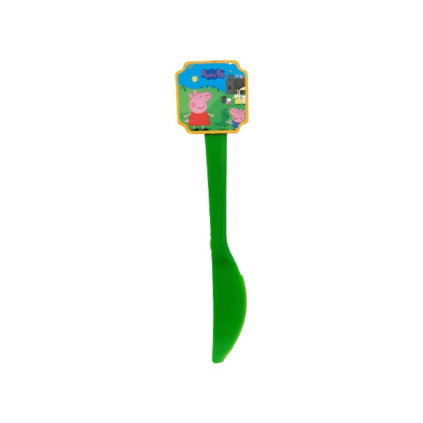بچه های دوستدار پپا پیگ عاشق دیدن آن ها روی ظروف مهمانی و تولد از جمله چنگال و چاقو هستند. وقتی نوبت به صرف کیک، شیرینی، میوه و یا سایر دسرهای خوش طعم تولد می رسد، از این چاقوها به همراه چنگالهای آن استفاده کنید. بچه‌ها از چاقوهای سبز که تصویری از تم مورد علاقه شان را دارد، لذت خواهند برد. یک بسته شامل 10 عدد چاقو پپا پیگ با کیفیت و به رنگ سبز می باشد که برای تعداد 10نفر مهمان کافی است. جنس این چاقوها از نوع پلاستیک مرغوب و مناسب برای صرف کیک و میوه در جشن ها با تم تولد پپا پیگ می باشد.